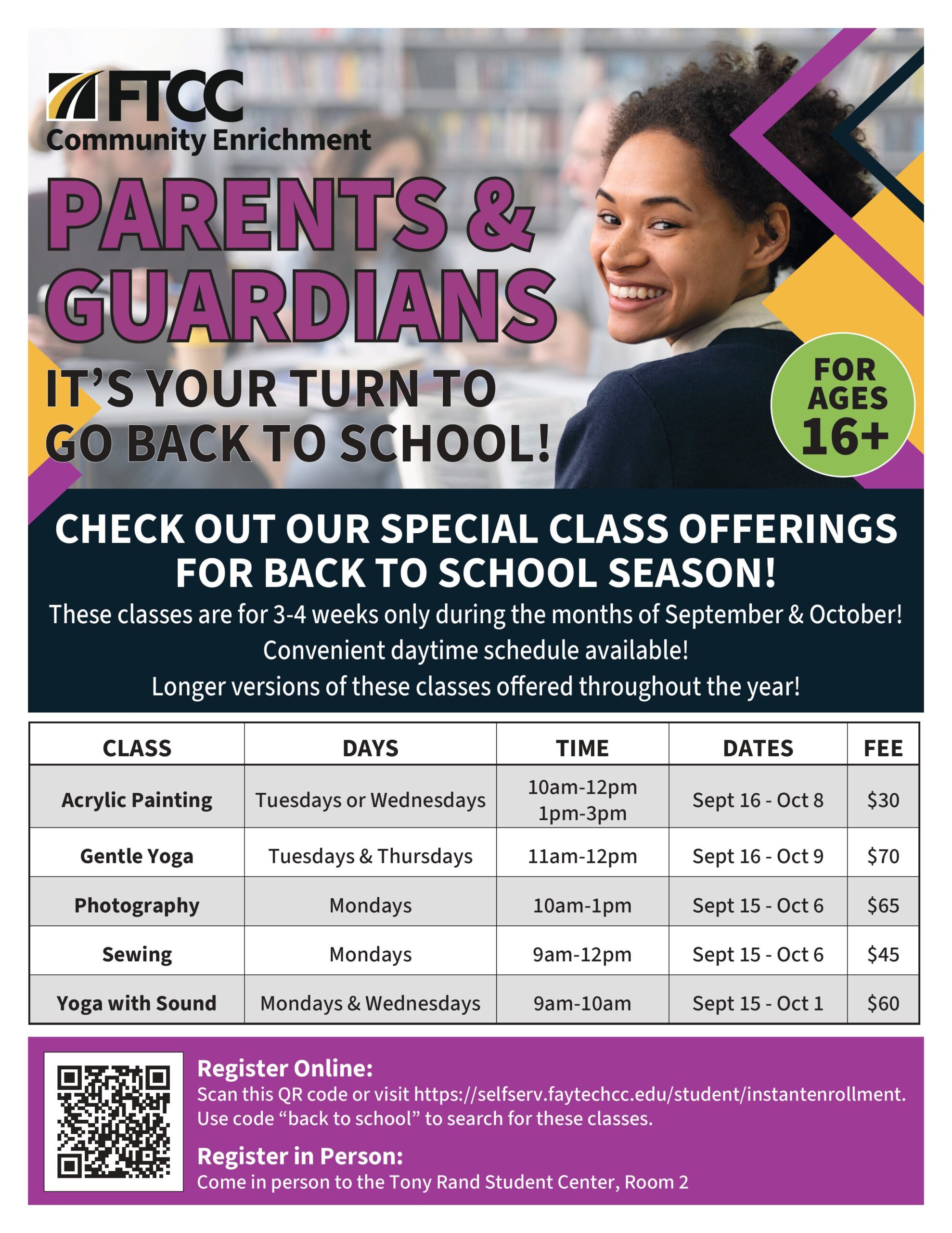 FTCC is pleased to offer financial assistance to our students through child care grant. Learn more!