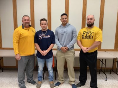 Bladen Strickland, second from left, has accepted a transfer to Keystone College, becoming the first FTCC baseball player to transfer to a four-year program.